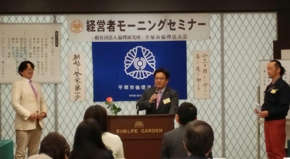 平塚市倫理法人会経営者モーニングセミナー 平塚市倫理法人会 会長 内山徹 平塚市倫理法人会 会員 橋爪義弘 湘南ベルマーレ 雲手哲也