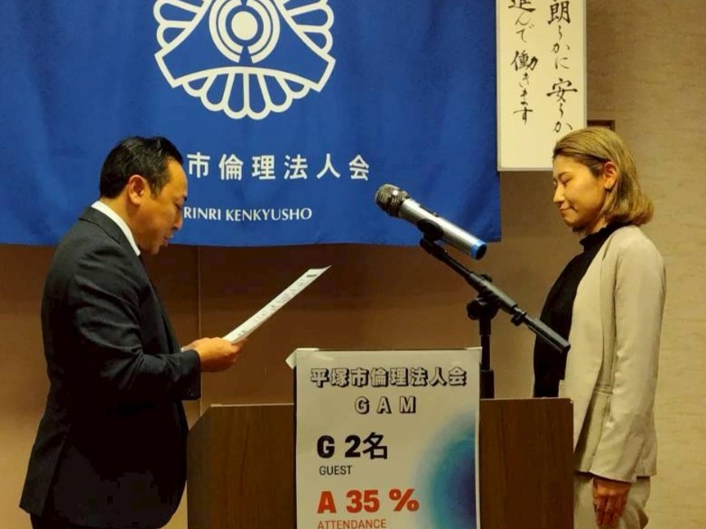 先ずは出席確認を行い、その後、下記2名の新入会員の入会式が執り行われました。