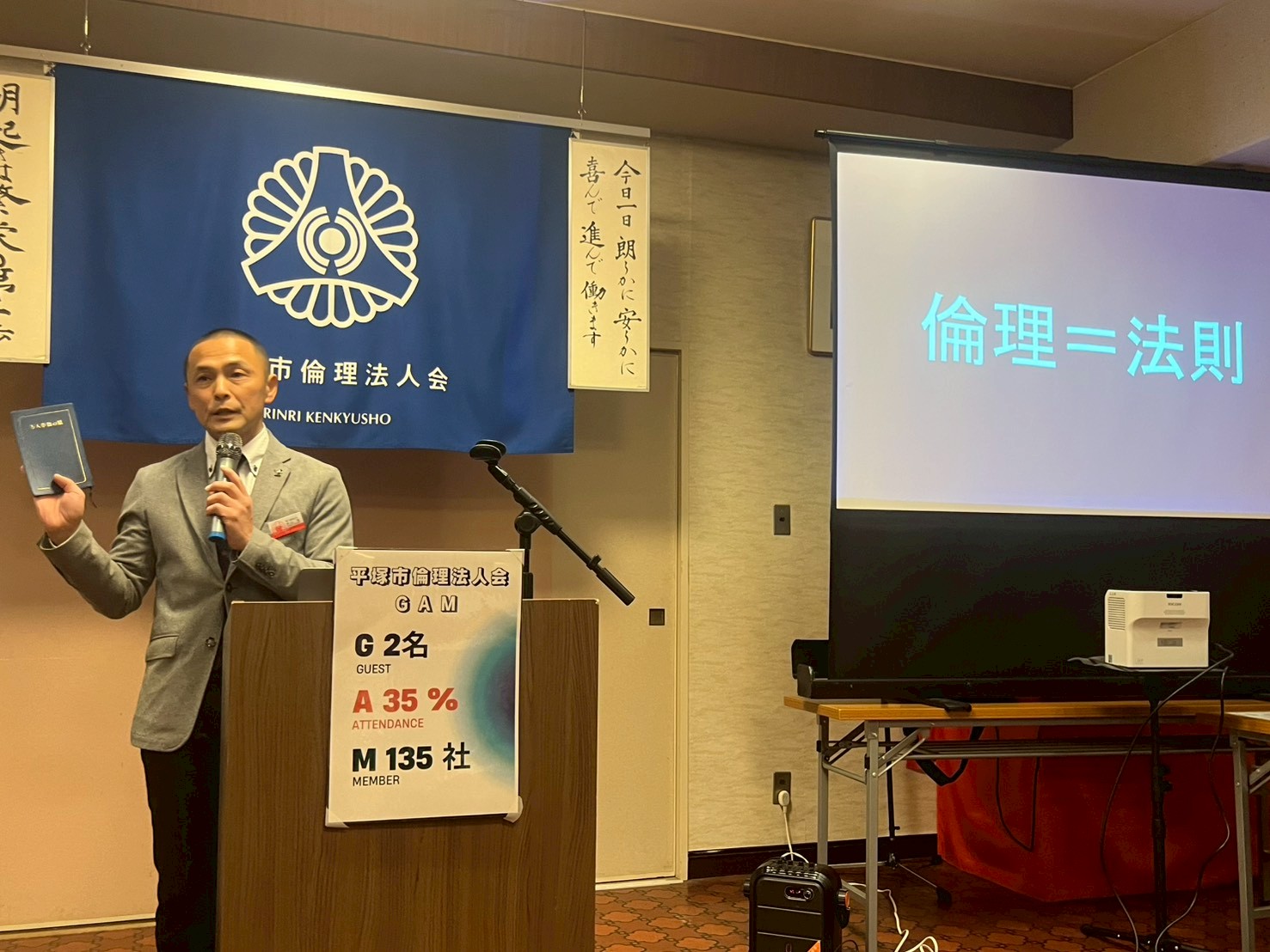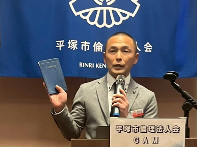 昨年の会員スピーチで奥様と互いに口を聞かない状態から自分を変え夫婦愛和を実践した結果、日本酒を飲むツアーに行こうと誘わたのが実現できたそうです。お酒があまり飲めなかった奥様が飲めるようになり一緒に時間を過ごす共通の楽しみができたと嬉しそうにお話されていたのが印象的でした。私たちの倫理は家族との関係が最も大切であり、先祖まで遡り命の繋がりを重要にしています。相手を変えるのではなく自分が変わりご家族の関係が豊かになった実践結果だと感じました。